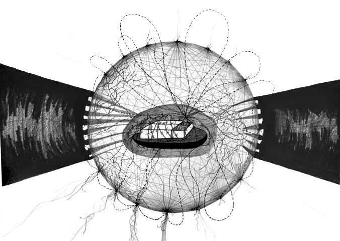 Geschlossene Welt , Zeichnung, 40 x 60 cm |