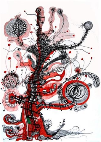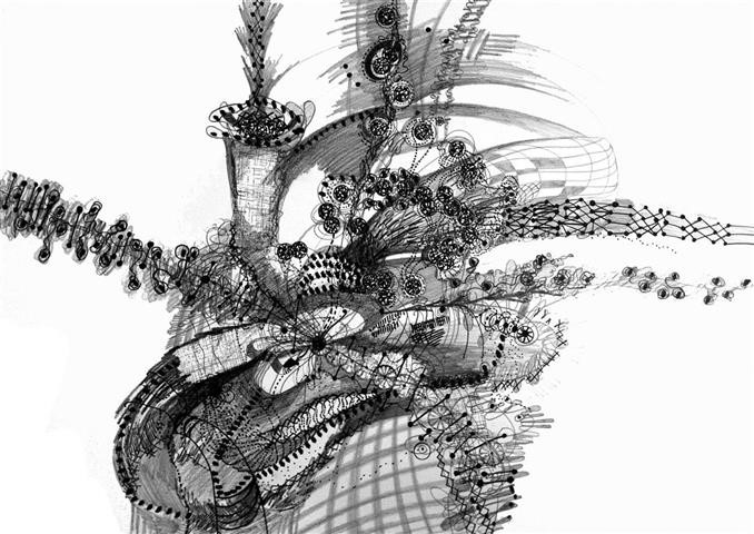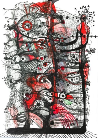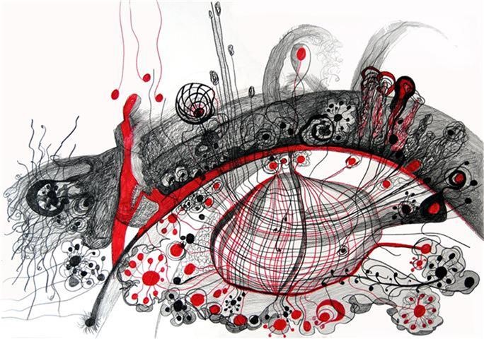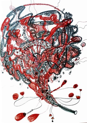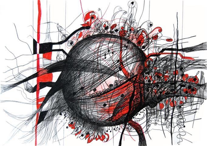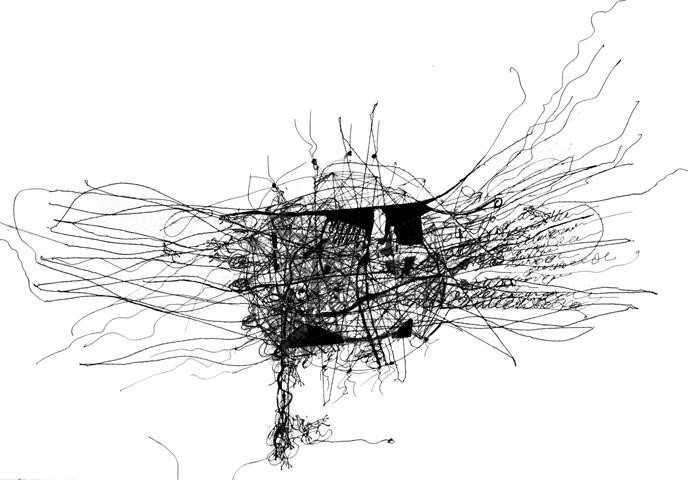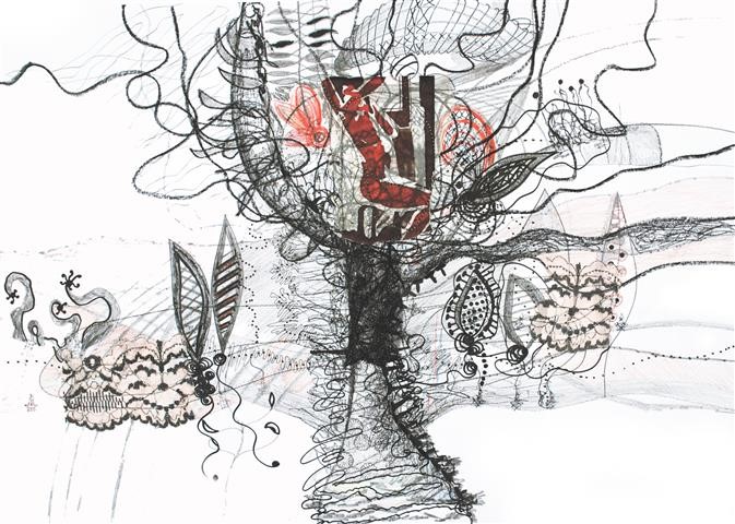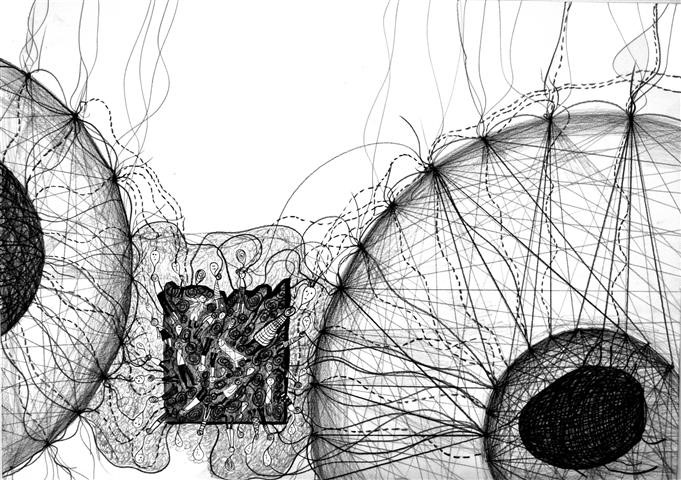 Gedanken-Welt, Zeichnung, 60 x 70 cm |