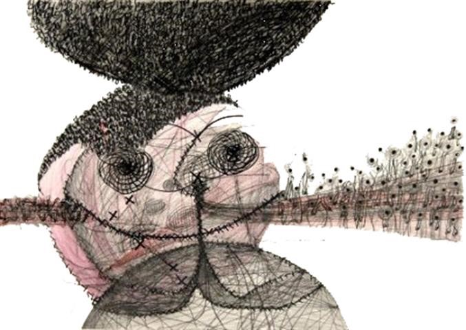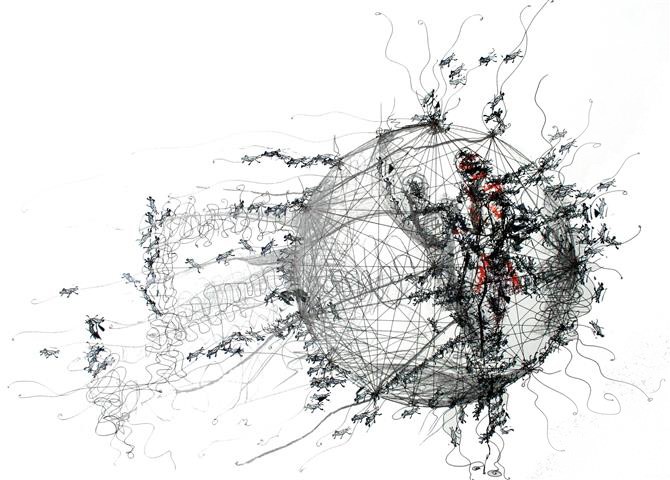 Welt/en drücken auf dem Gehirn, Zeichnung, 40 x 60 cm |