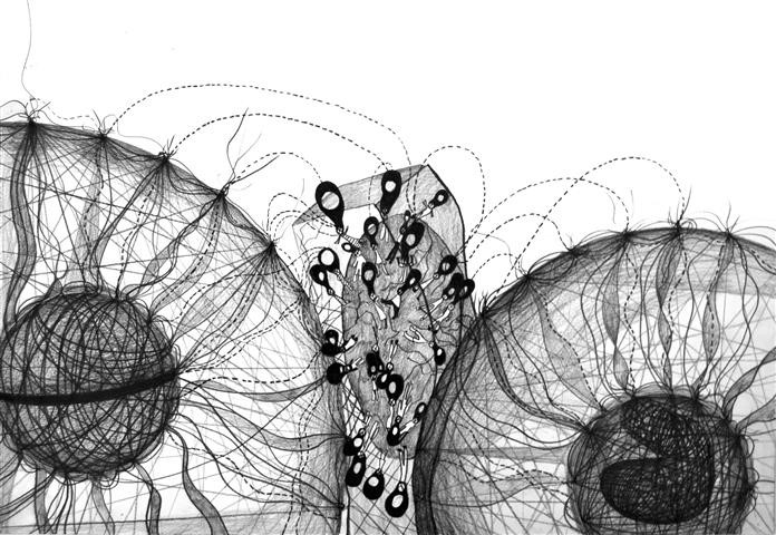 | EntPuppung, Zeichnung, 40 x 60 cm |