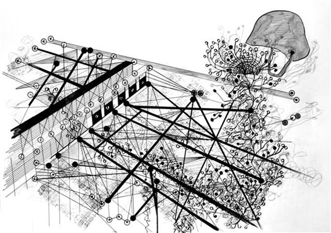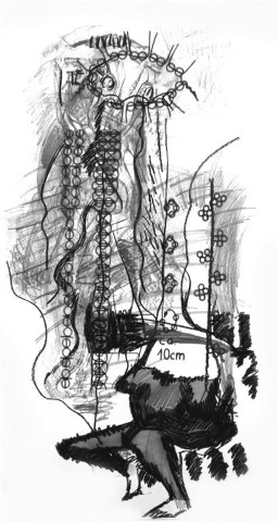 Brücke aus Knochen, Zeichnung, 40 x 60 cm |