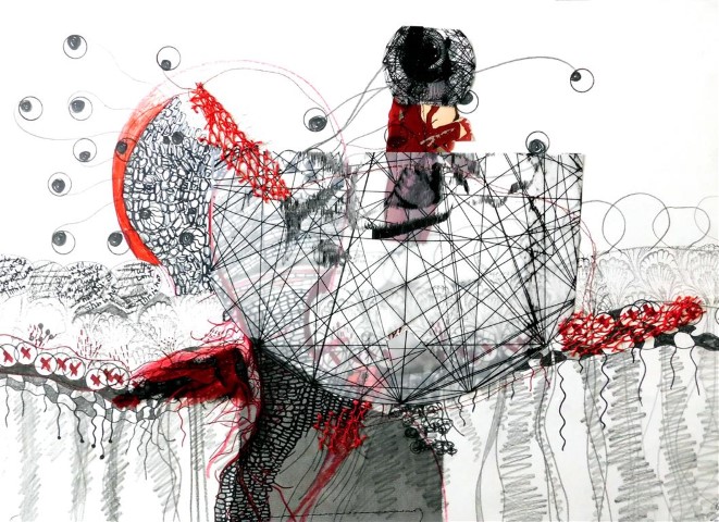 Geteilte Welt, Zeichnung & Collage, 40 x 60 cm |