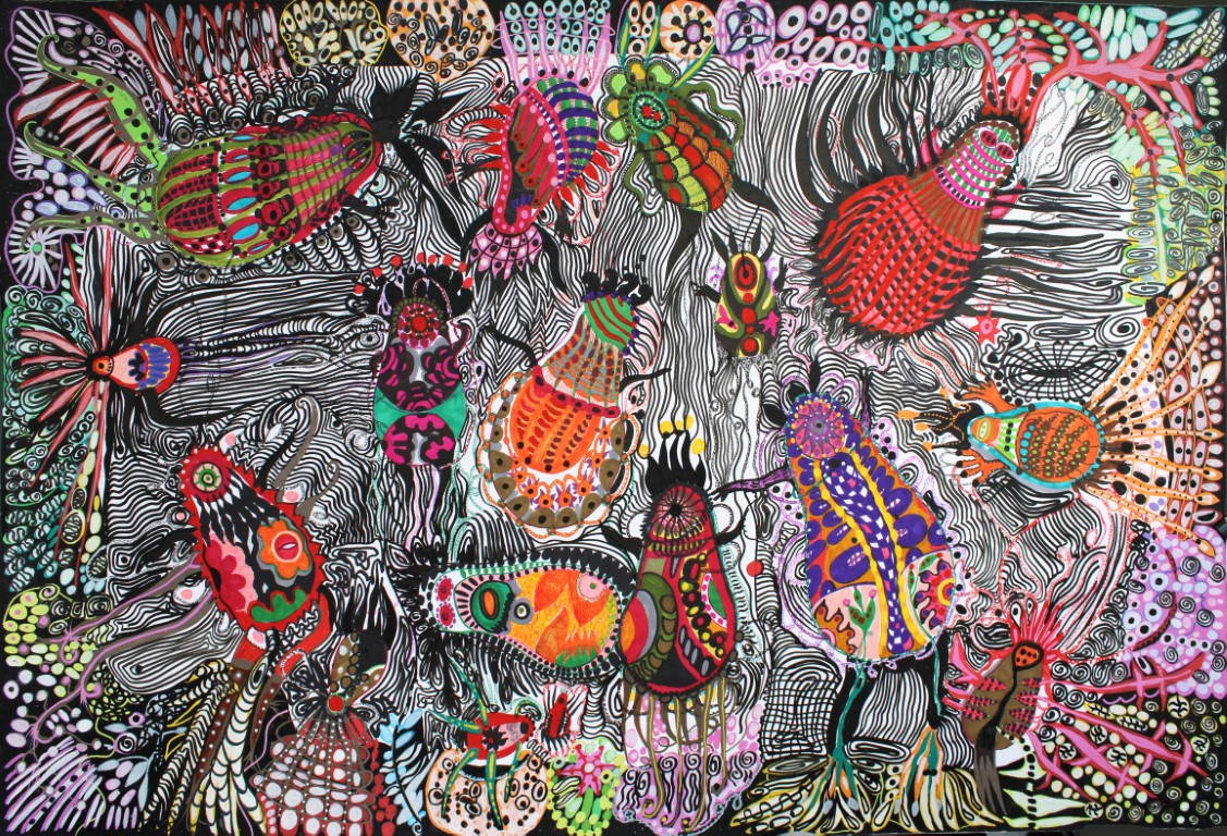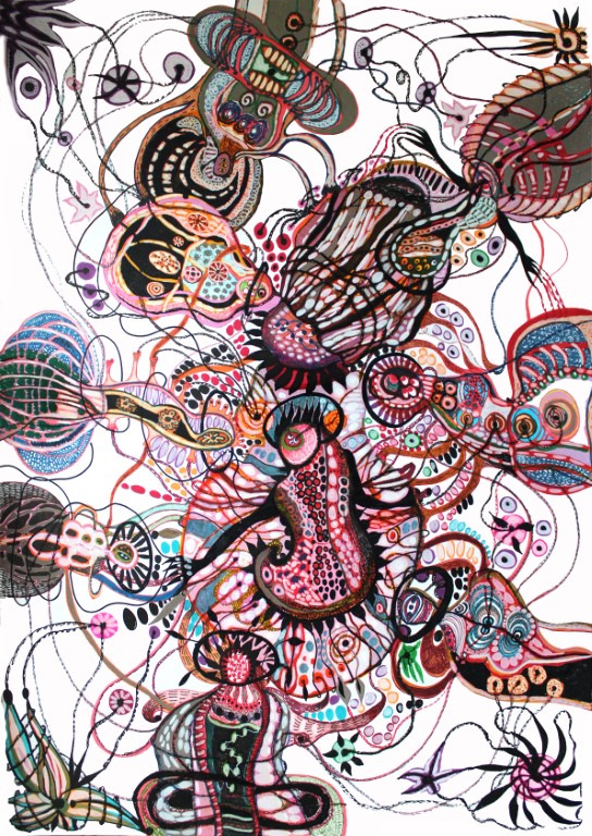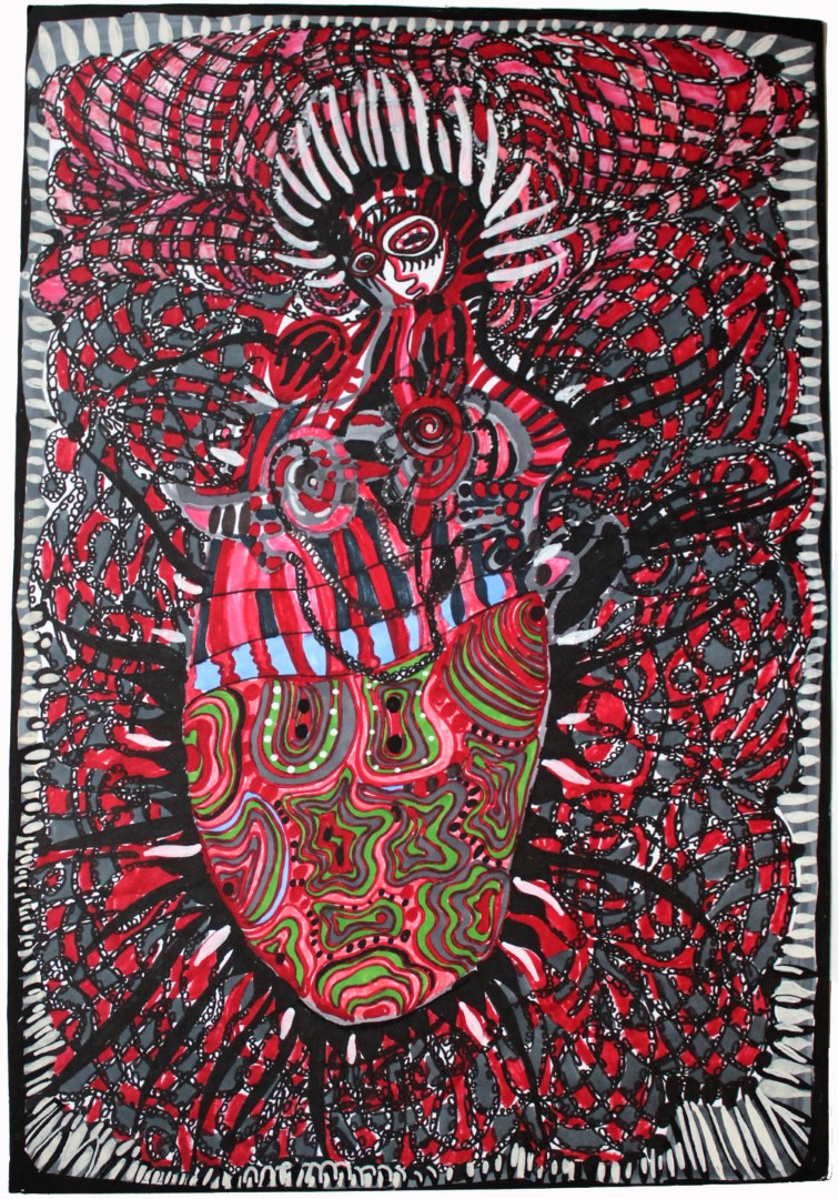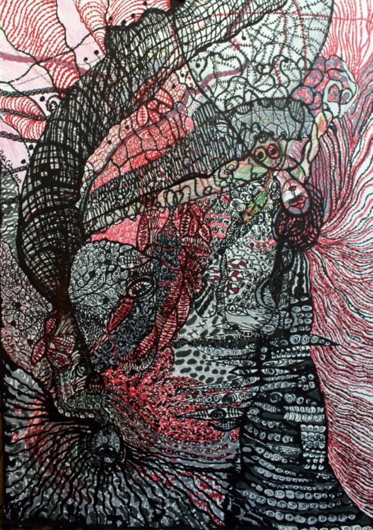 Gespräche mit dem inneren Kind, Zeichnung auf Karton, 70 x 100 cm |