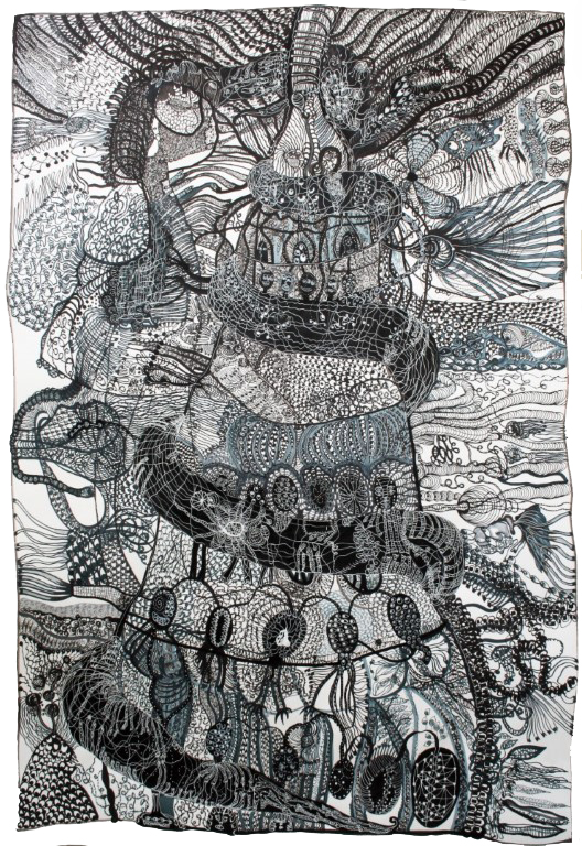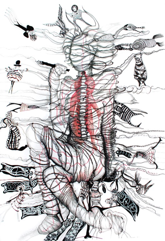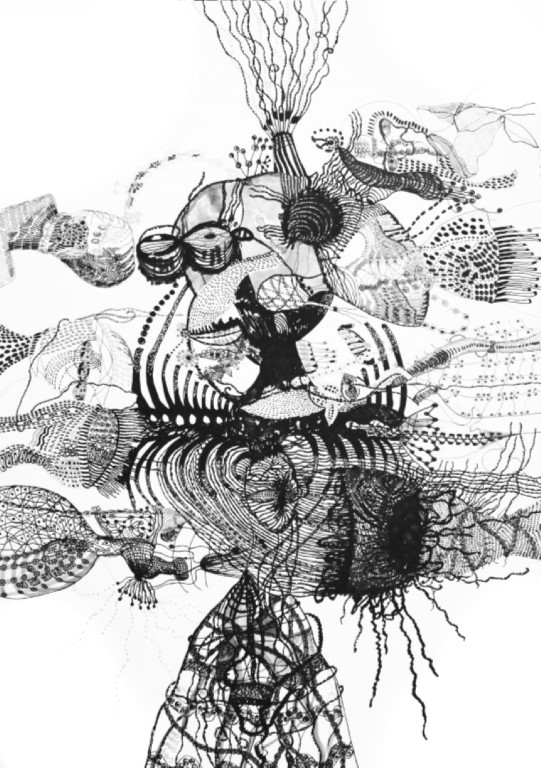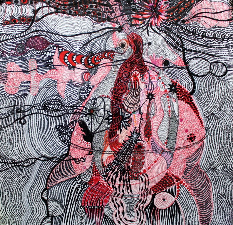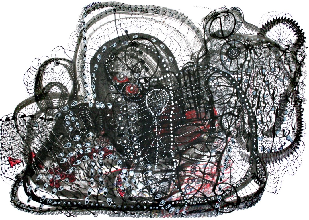 Sehnsucht nach dem Weiblichen, Zeichnung auf Papier, ca. 120 x 120 cm |