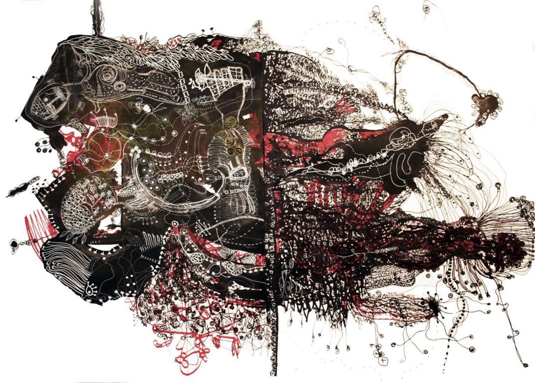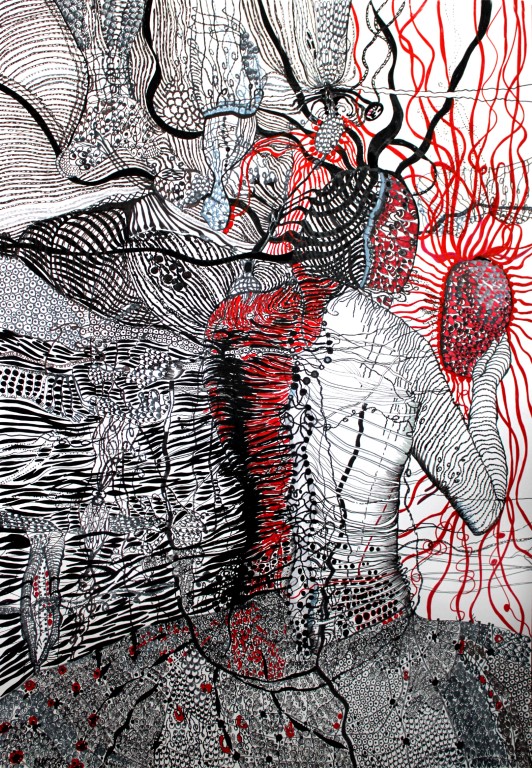Sprache der Seele / What it feels..., Zeichnung auf Papier, 40 x 60 cm |