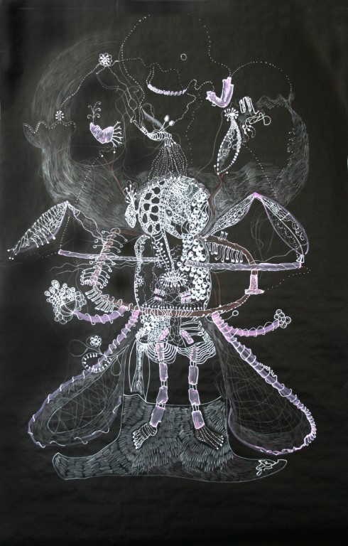 Mädchenpsyche / What it feels like for a girl, Zeichnung auf schwarzem Packpapier, ca. 100 x 130 cm |