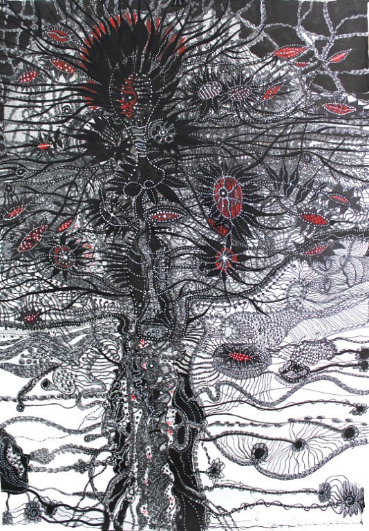 Sehnsucht / Wurzellos, Zeichnung auf Karton, 70 x 100 cm |