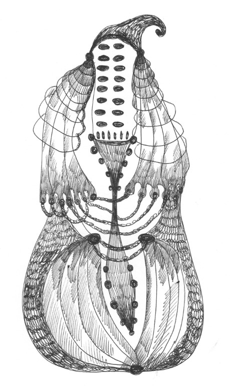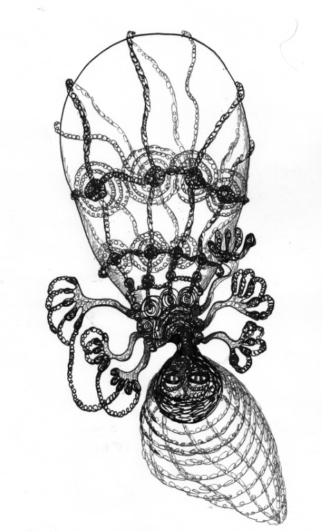 Helm (in dem Pflanzen wachsen), Zeichnung auf Karton, 70 x 100 cm |