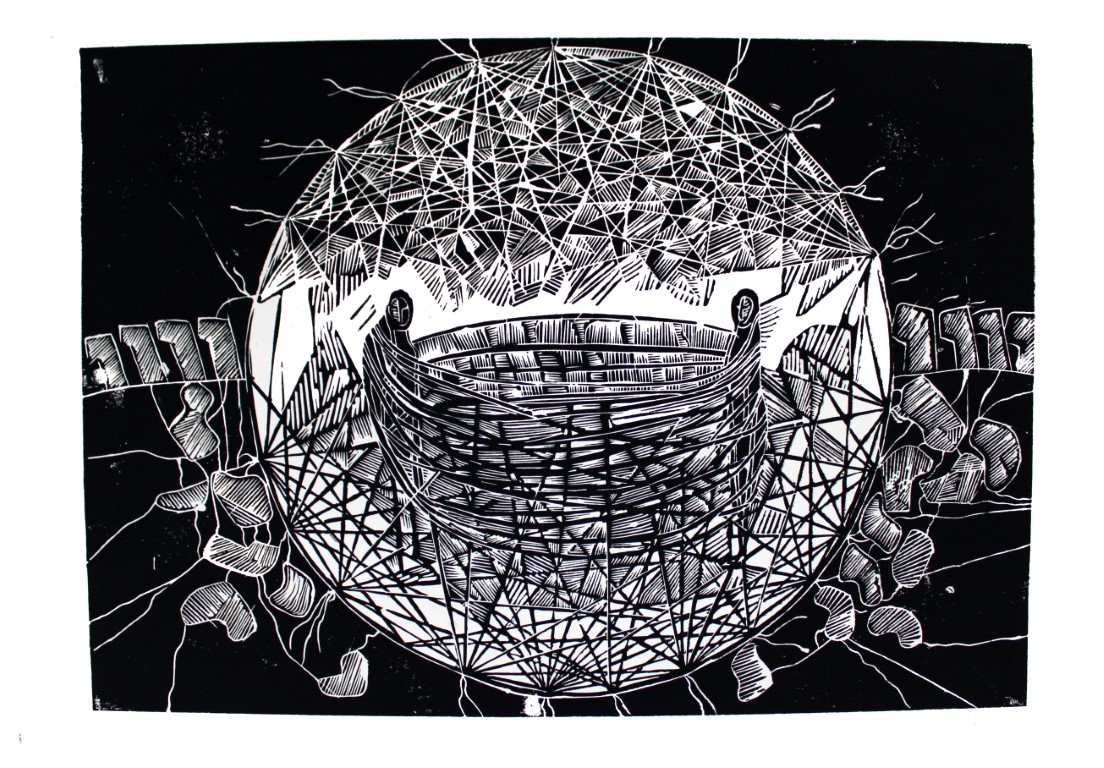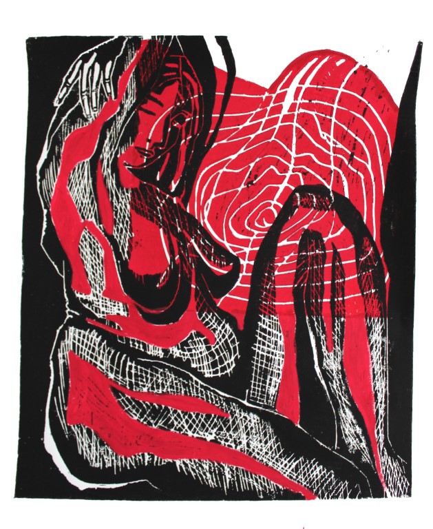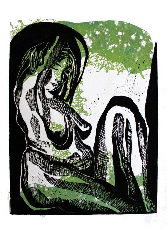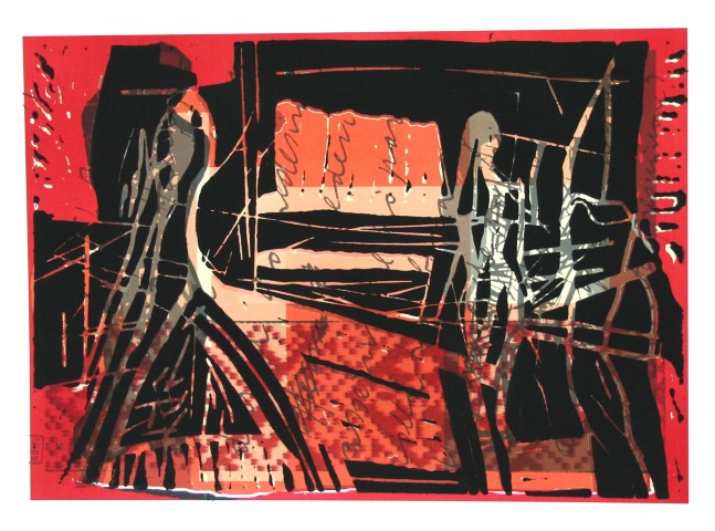 World, Linolschnitt auf Papir, ca. 50 x 70 cm |
