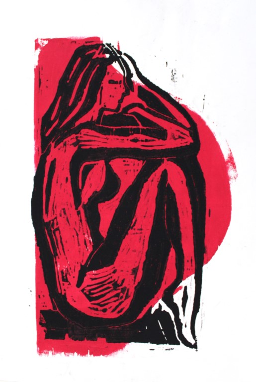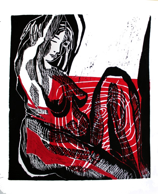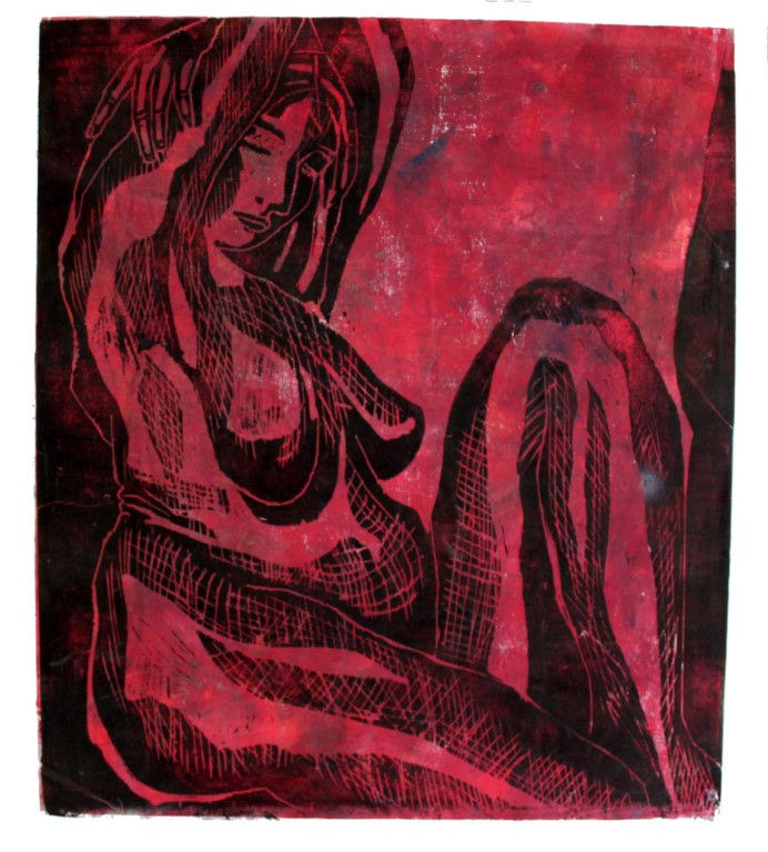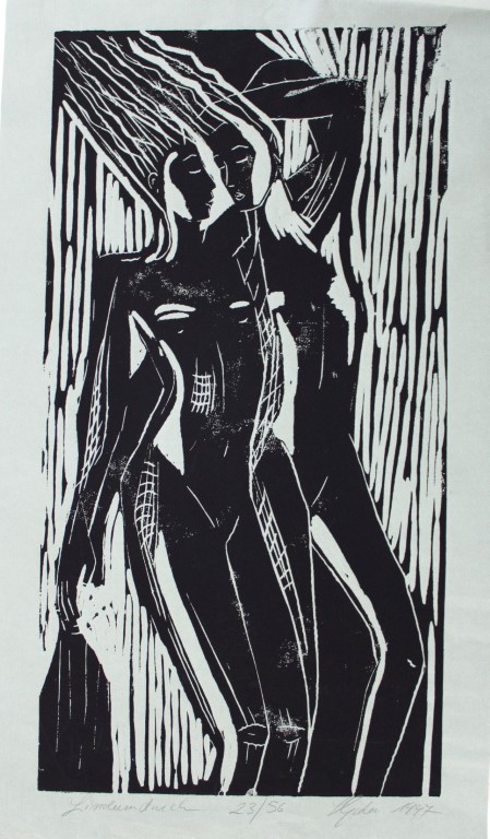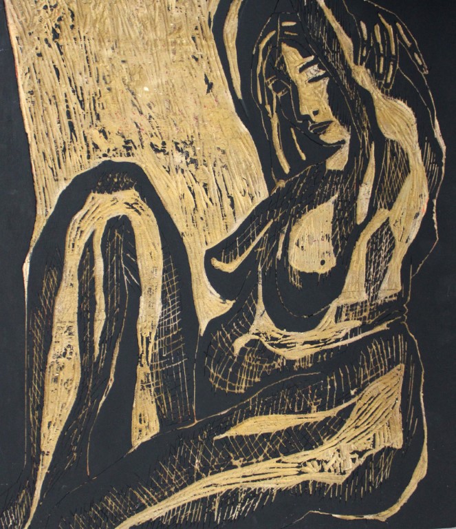 Frau, Holzschnitt auf Papier, 1-2 Platten, ca. 70 x 90 cm und weitere Holzdrucke