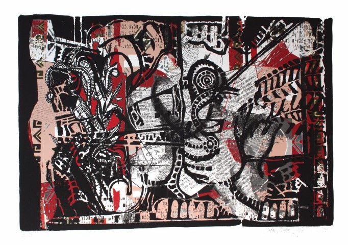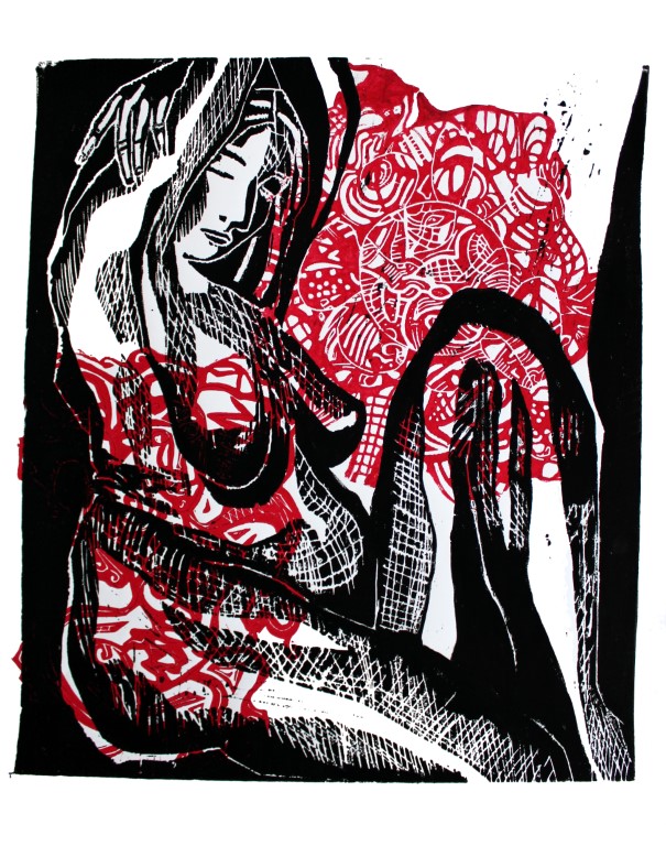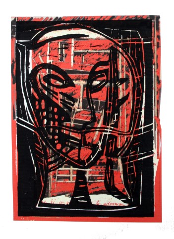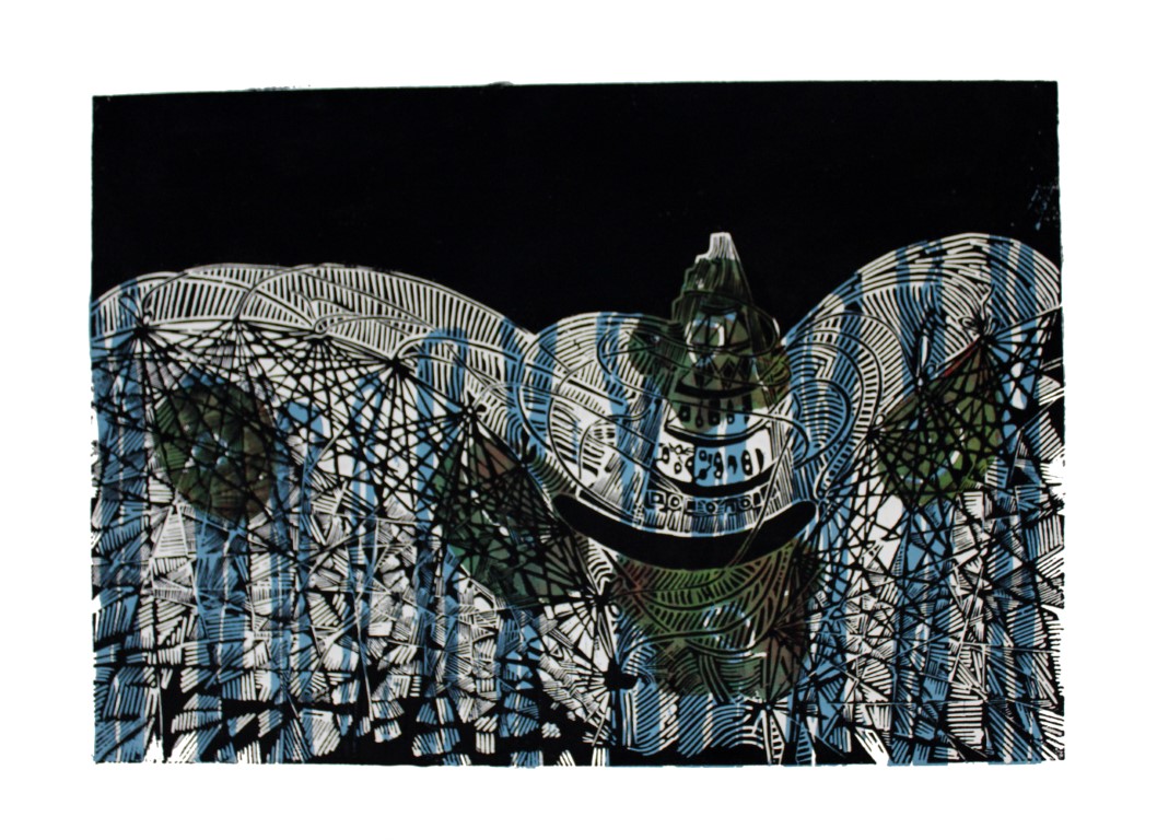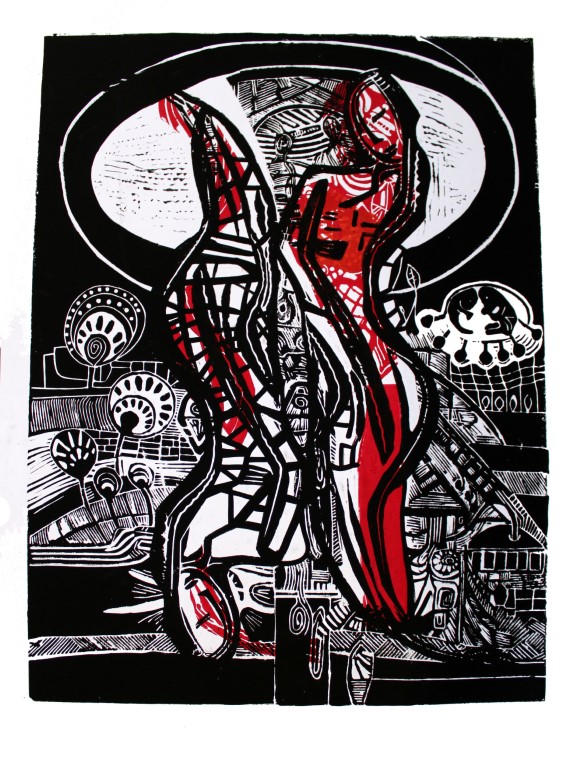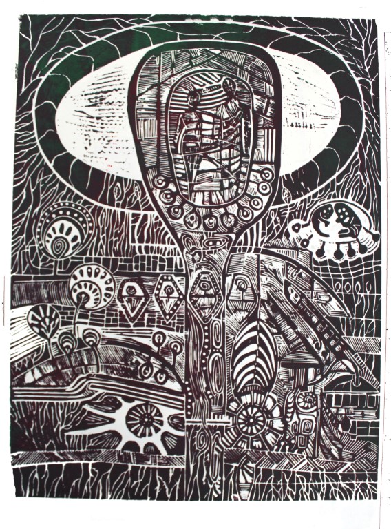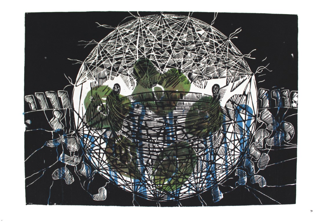 World / weitere Variante, Linolschnitt auf Papir, ca. 50 x 70 cm |