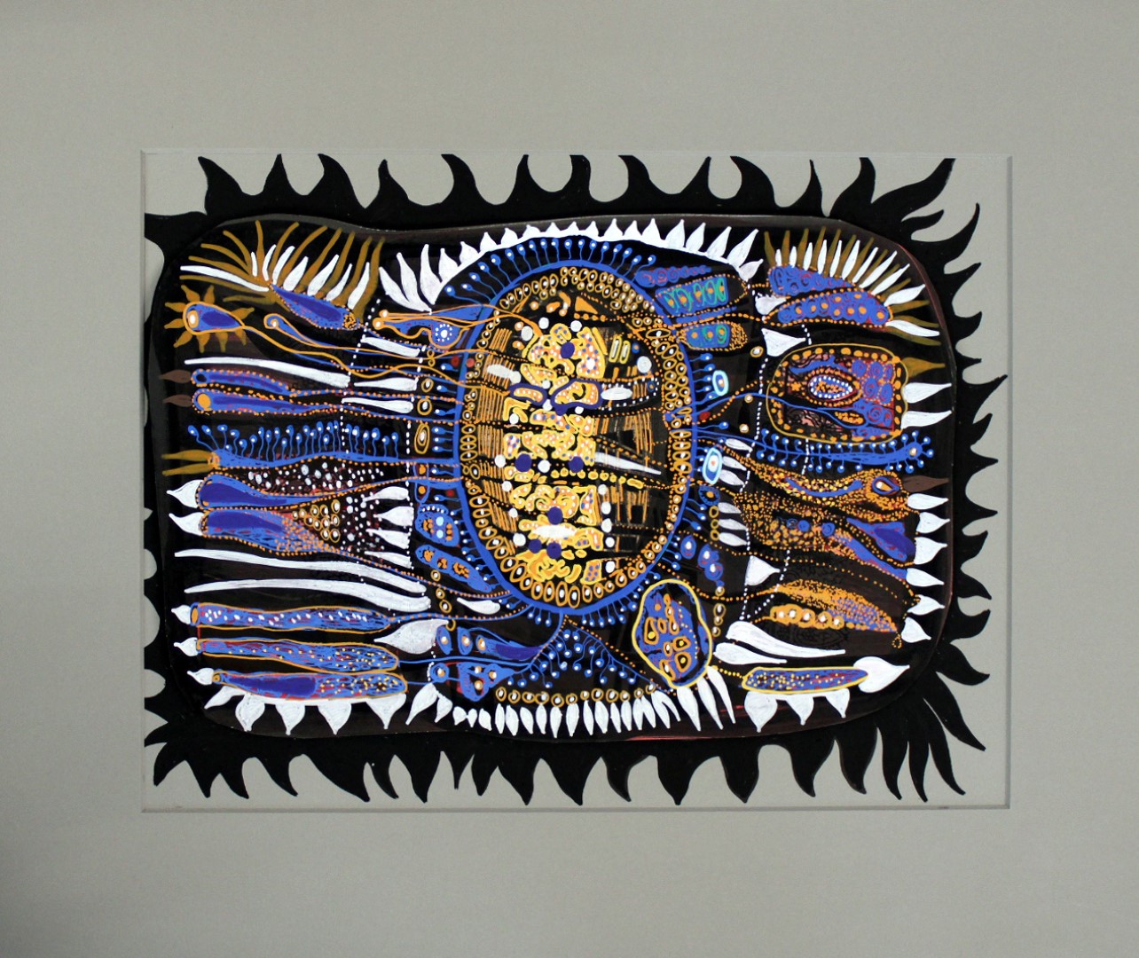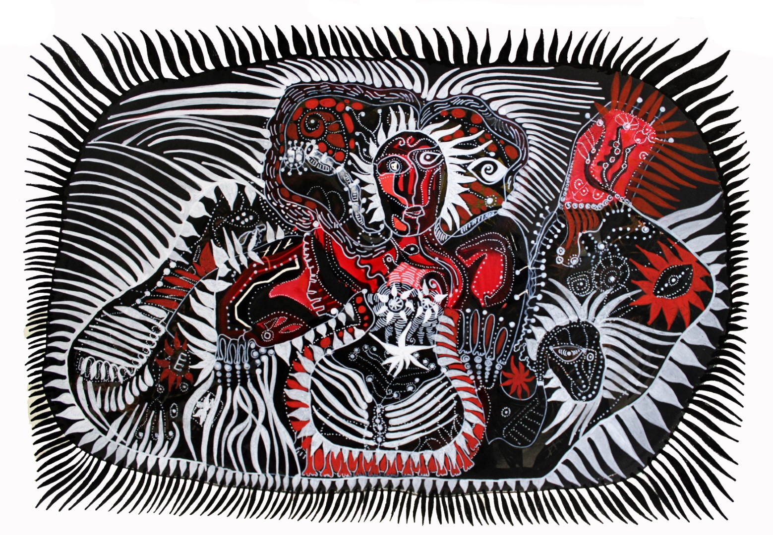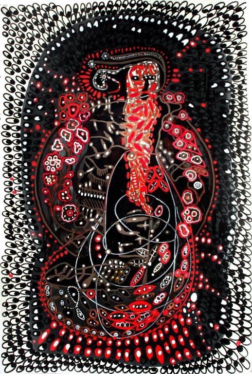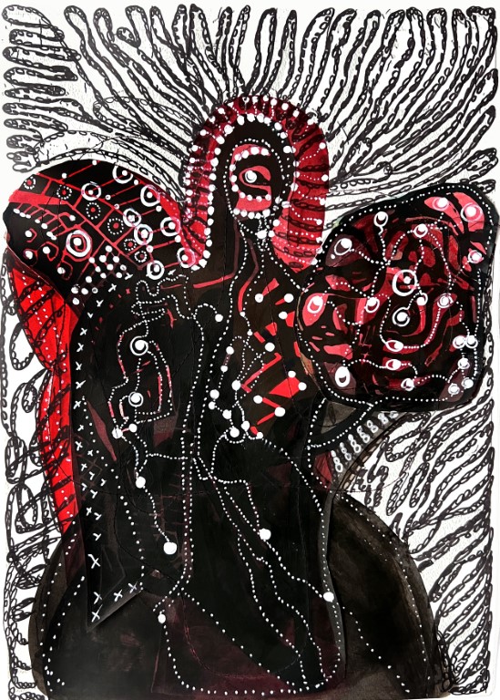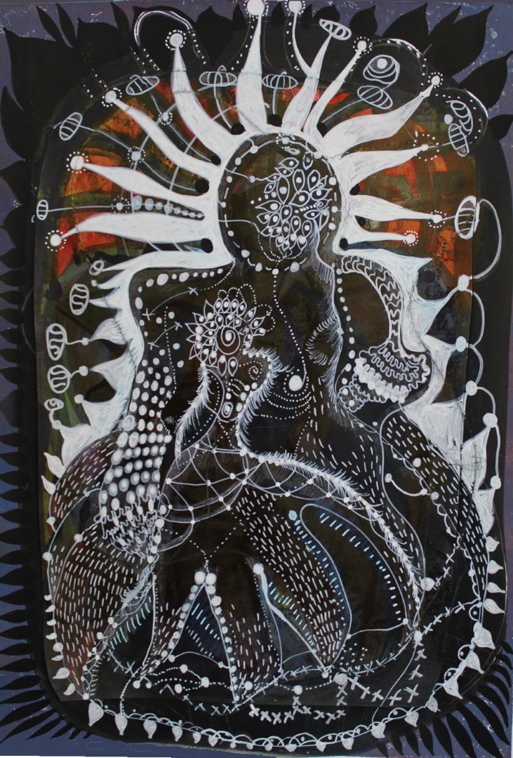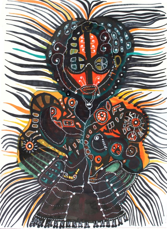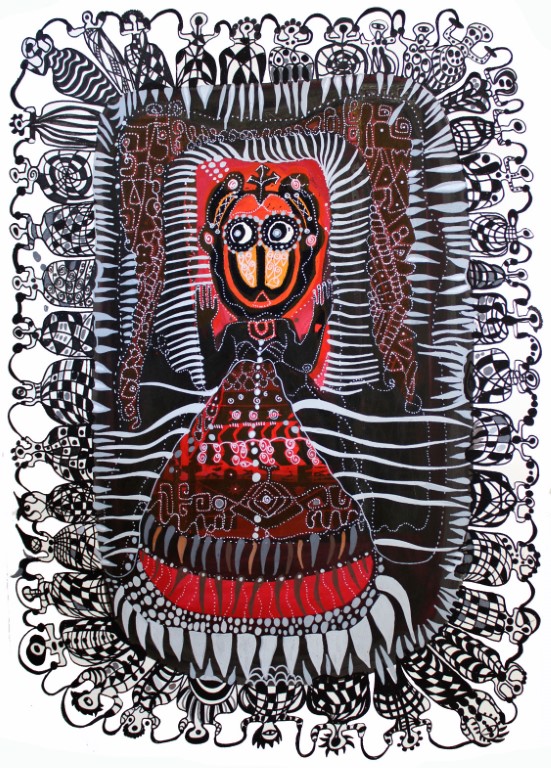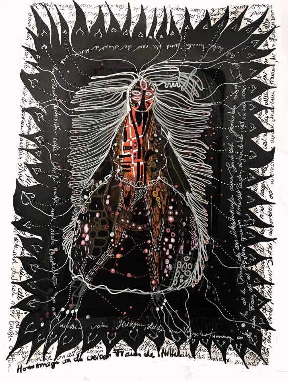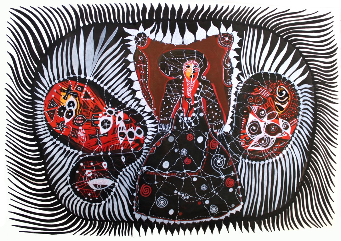 Matruschkas & Totems, u.a., Grafiken, Auswahl (Zeichnungen / Malerei und überzeichnete / übermalte Druckgrafiken wie Linol- und Holzdruck