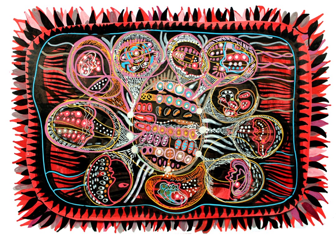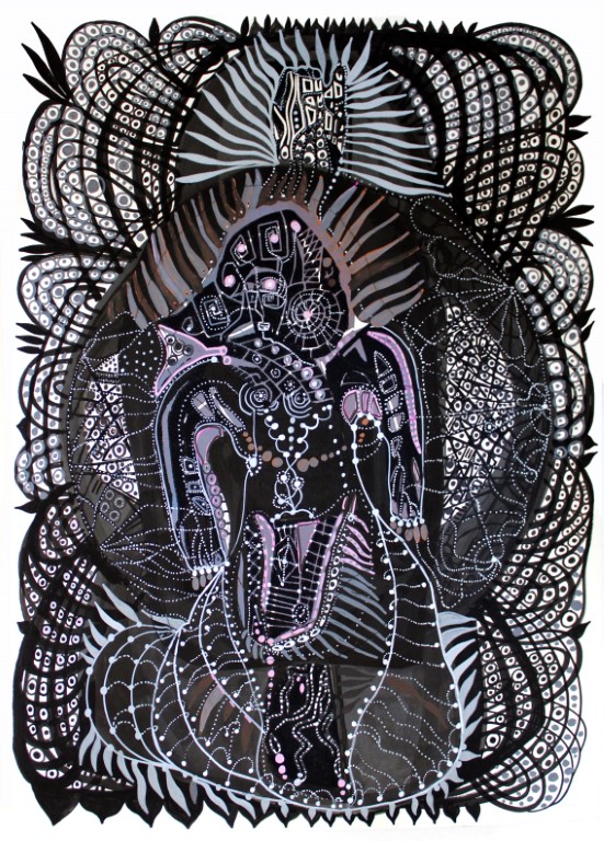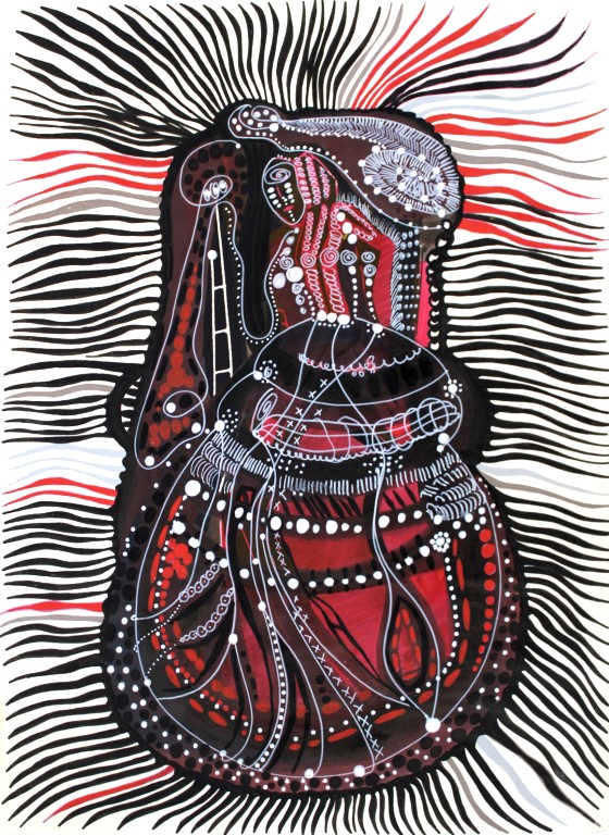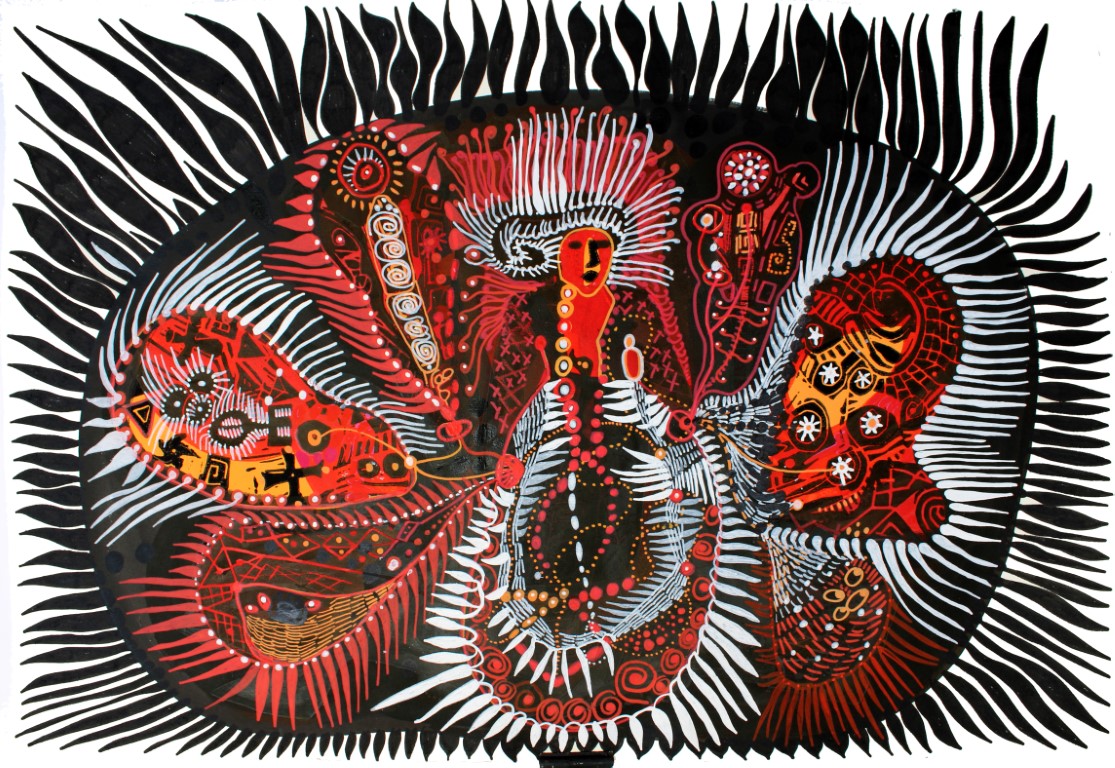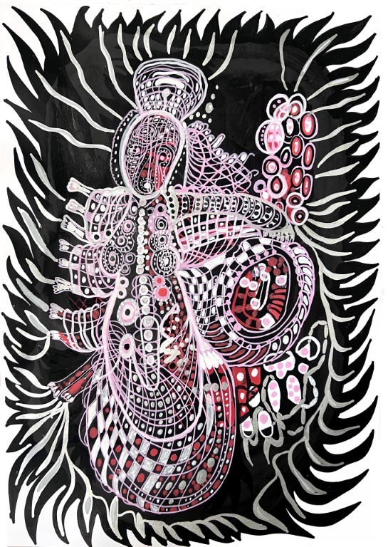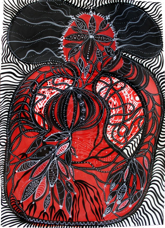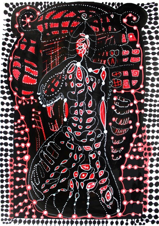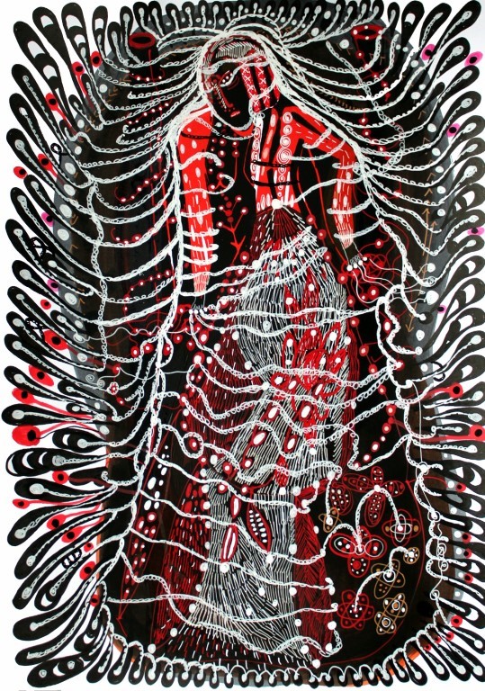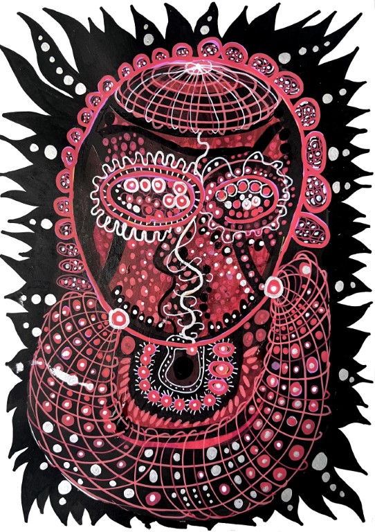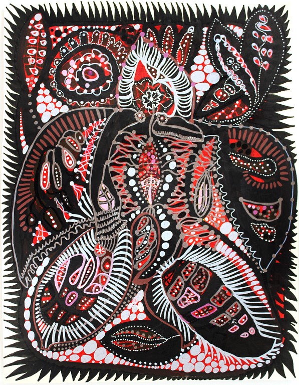 Matruschkas & Totems, u.a., Grafiken, Auswahl (Zeichnungen / Malerei und überzeichnete / übermalte Druckgrafiken wie Linol- und Holzdruck