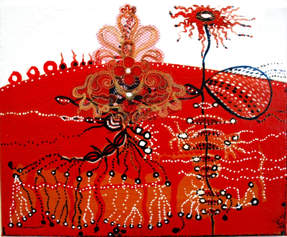 O.T., Gemeinschaftsarbeit mit LEL,(Ei)Tempera, Acryl auf Leinwand, 30 x 40 cm