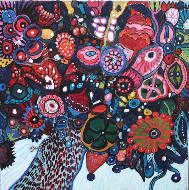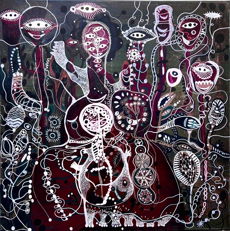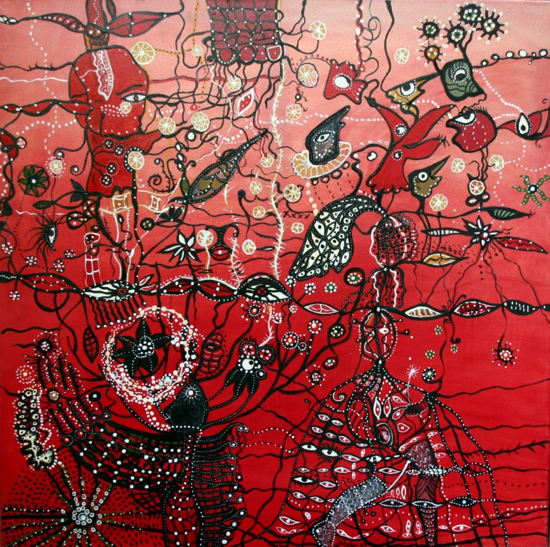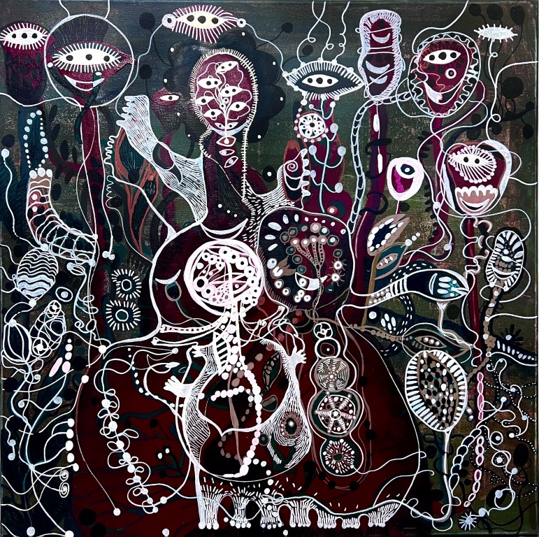 O.T., Gemeinschaftsarbeit mit LEL,(Ei)Tempera, Acryl auf Leinwand, 50 x 50 cm |