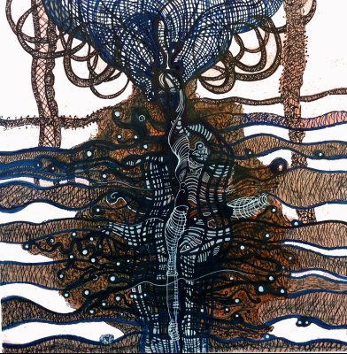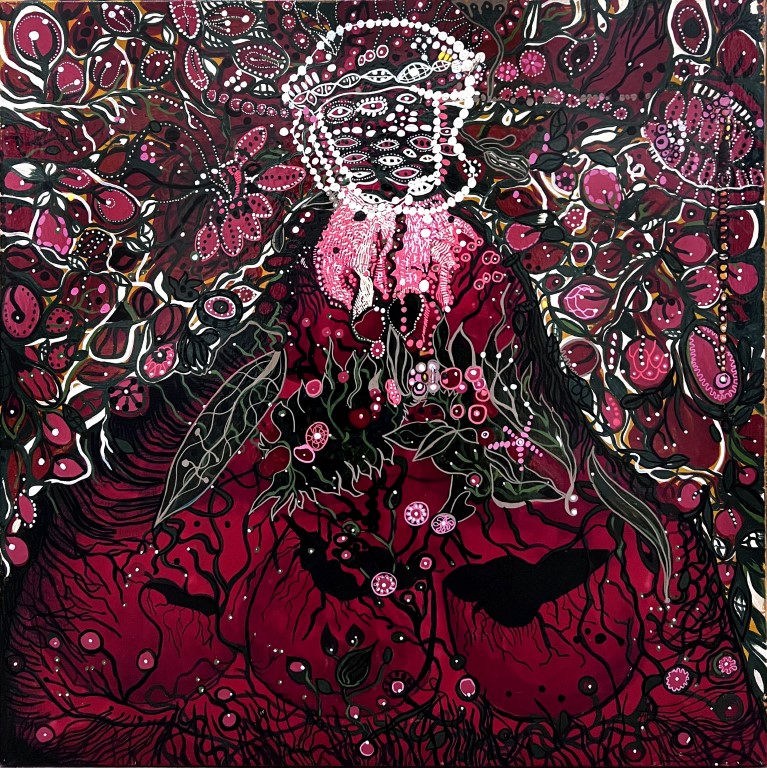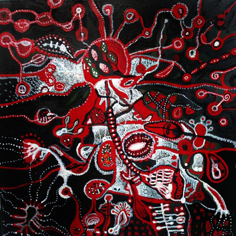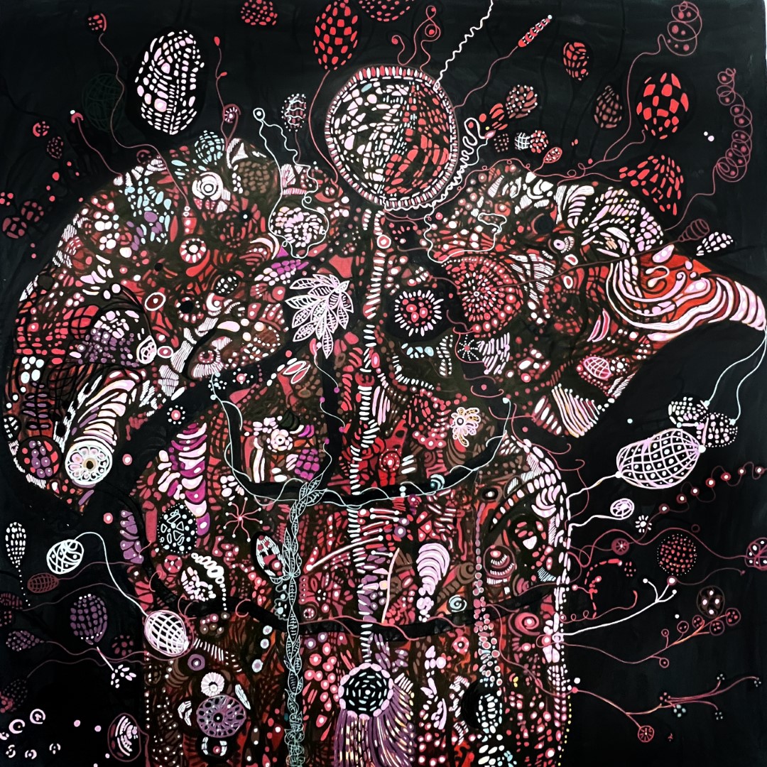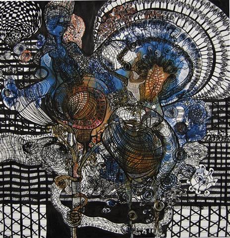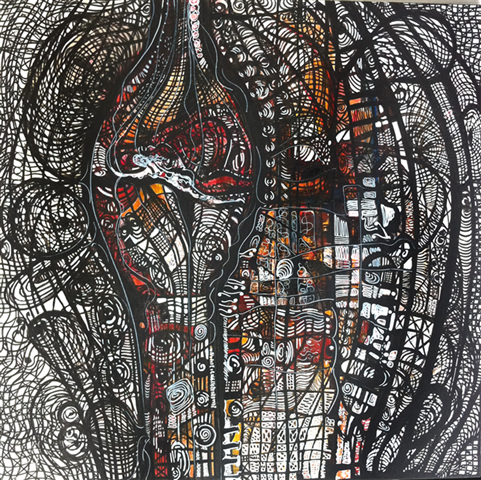 Tusche, Acryl und Marker auf Leinwand, 100 x 100 cm |