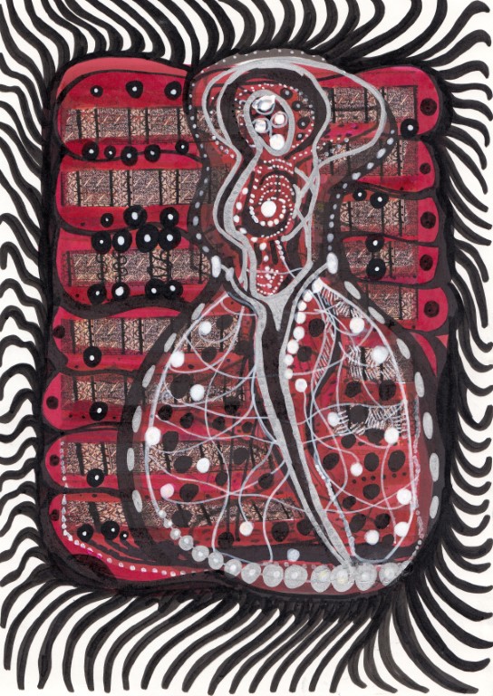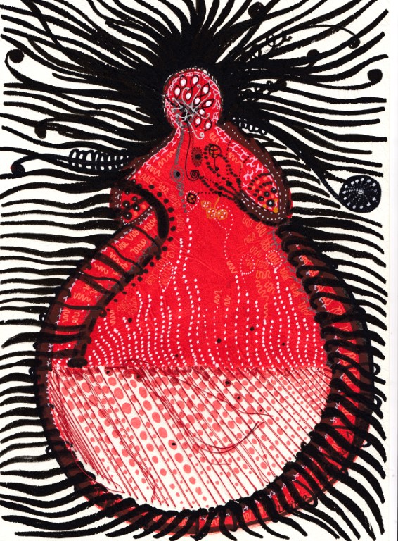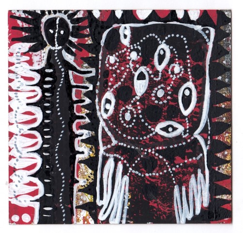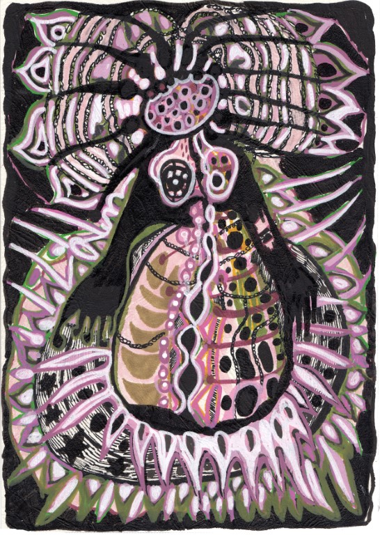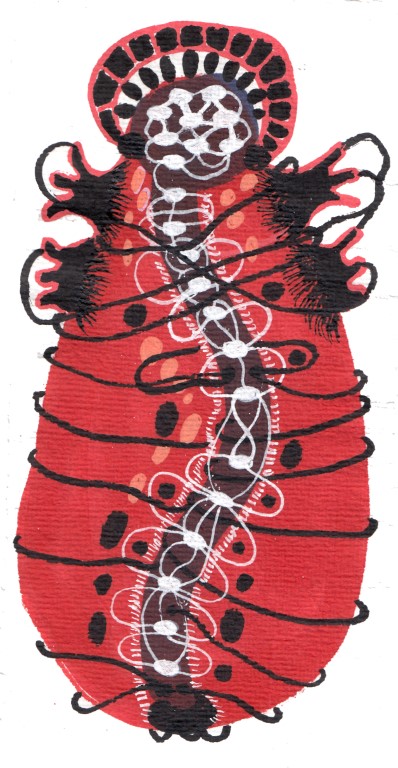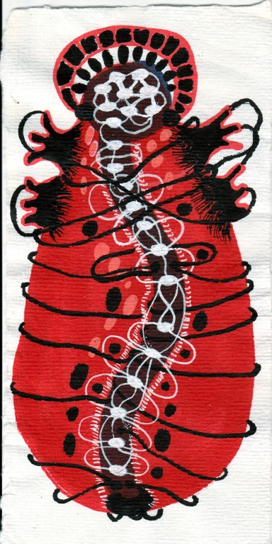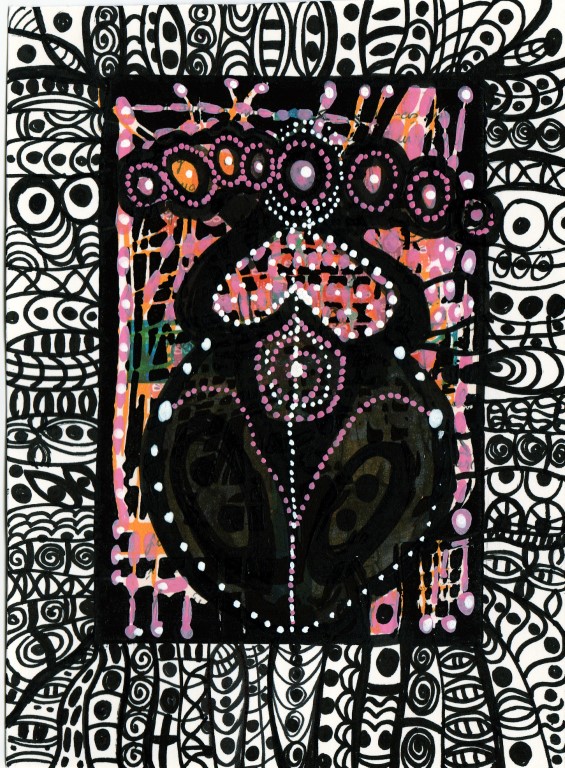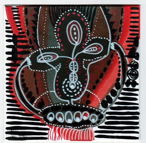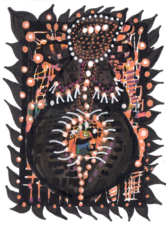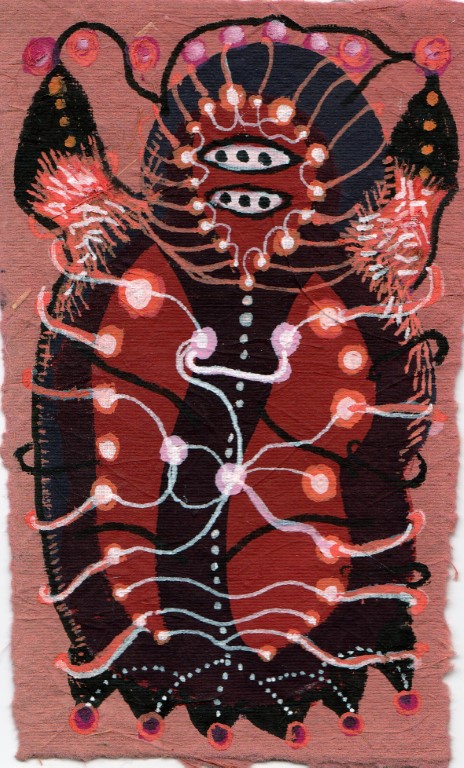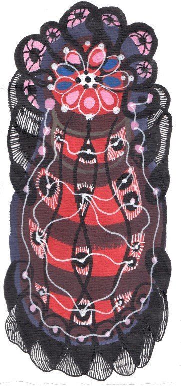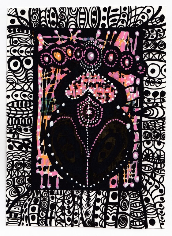 Tusche, Acryl, Marker auf Papier, Karton, bemaltes Papier oder Linoldrucke, kleine Arbeiten / ca. A4 und kleiner / mehr Arbeiten und Preise der verfügbaren Arbeiten auf E-Mail-Anfrage