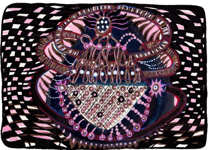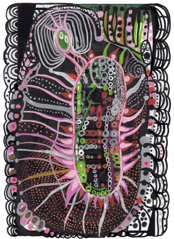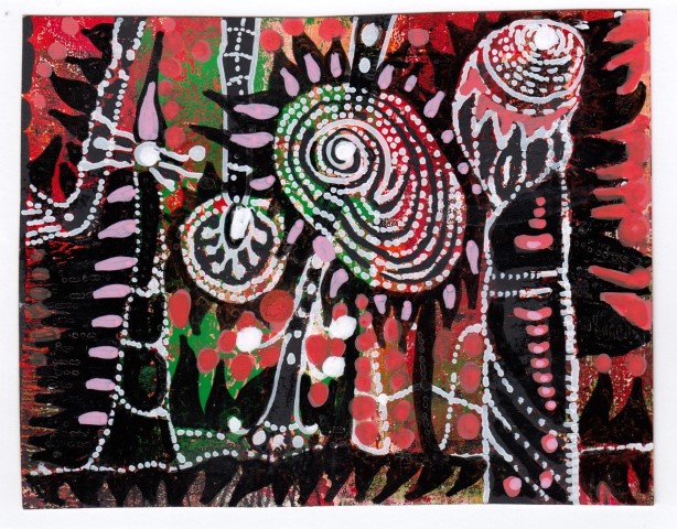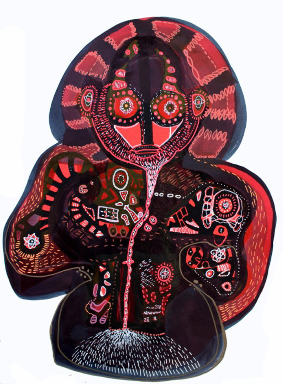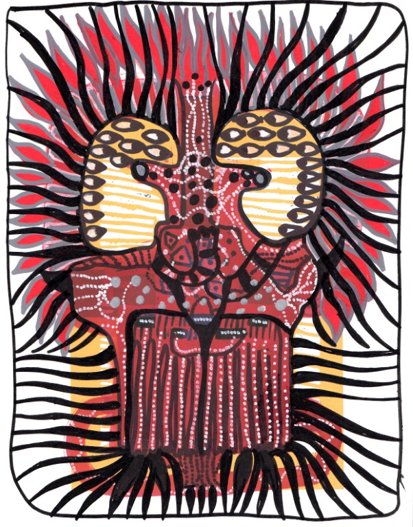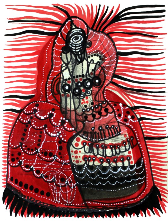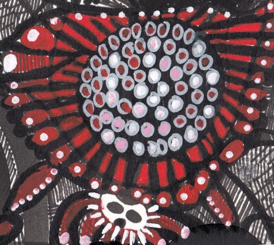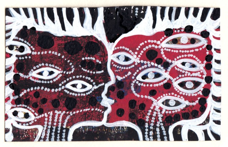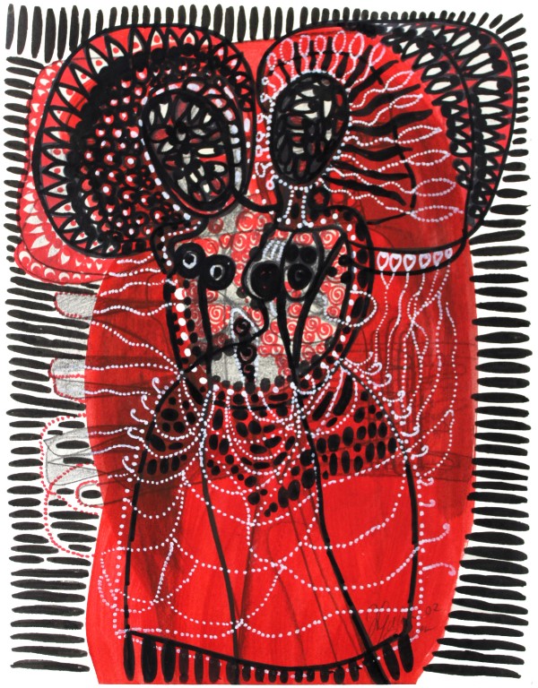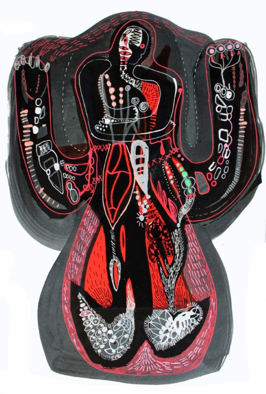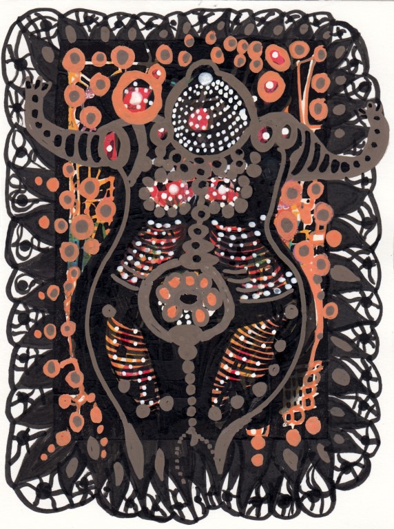Tusche, Acryl, Marker auf Papier, Karton, bemaltes Papier oder Linoldrucke, kleine Arbeiten / ca. A4 und kleiner / mehr Arbeiten und Preise der verfügbaren Arbeiten auf E-Mail-Anfrage