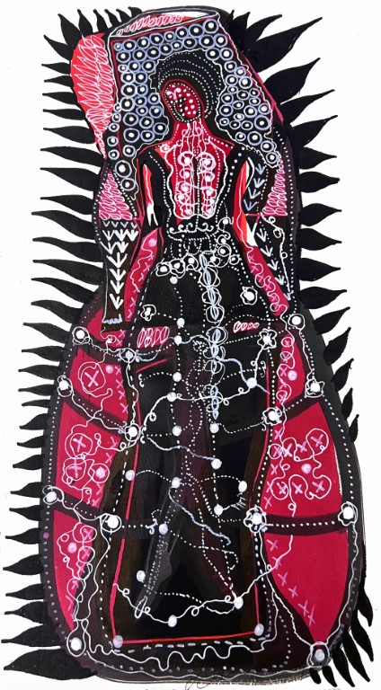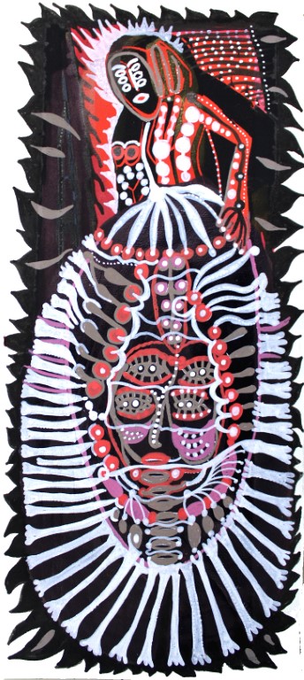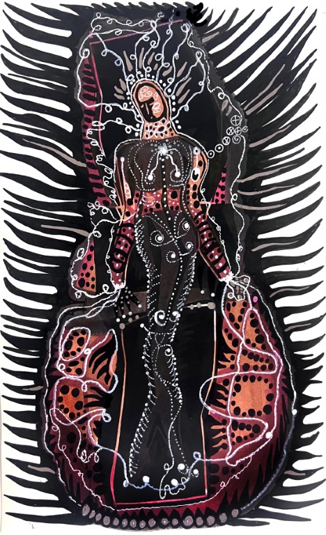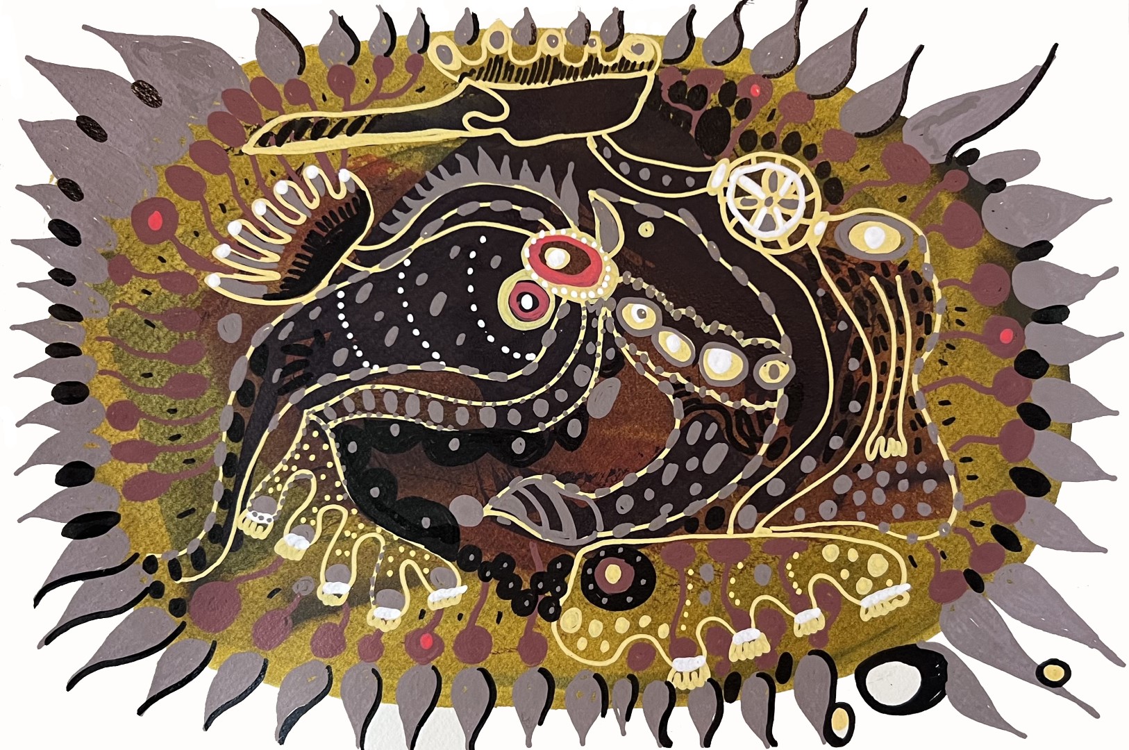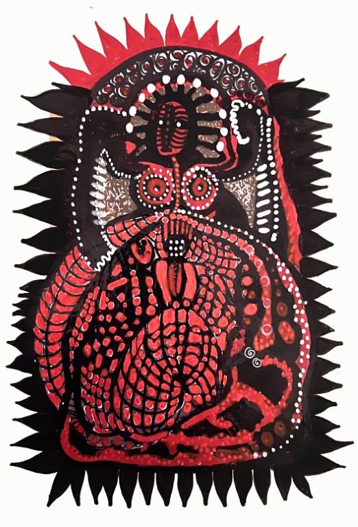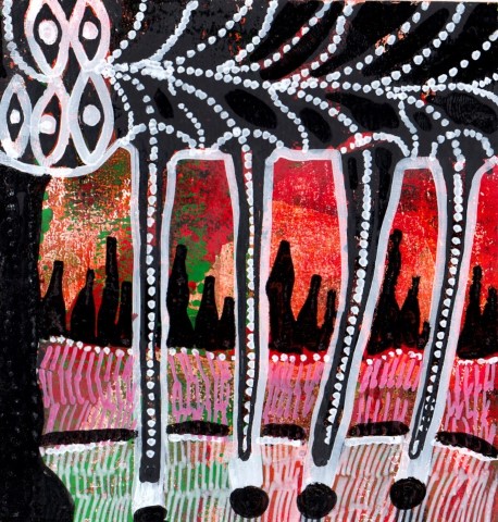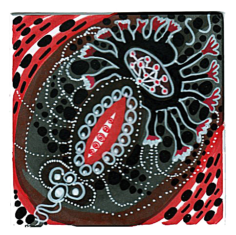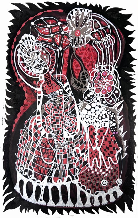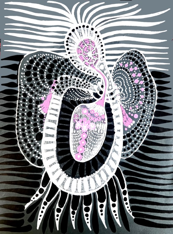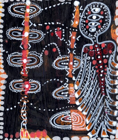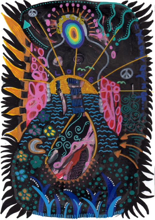 Tusche, Acryl, Marker auf Papier, Karton, bemaltes Papier oder Linoldrucke, kleine Arbeiten / ca. A4 und kleiner / mehr Arbeiten und Preise der verfügbaren Arbeiten auf E-Mail-Anfrage