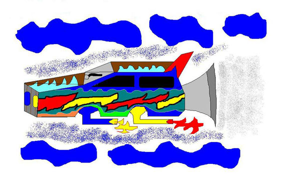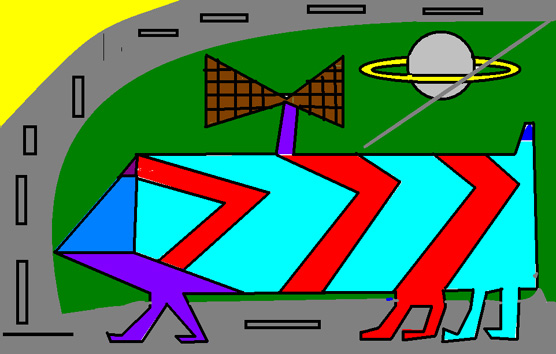 Auto mit Füßen und Planeten-Energie