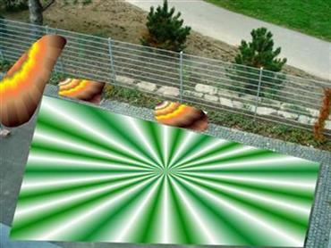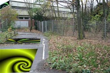 Die Baracken jetzt und mit Op-Art-Effekten versehen.
