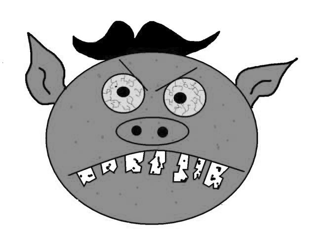 Der böse Blutsauger mit dem Schachtelkopf ist ein Fabrikbesitzer, der Kinder eingestellt hat und sie nicht bezahlt.
